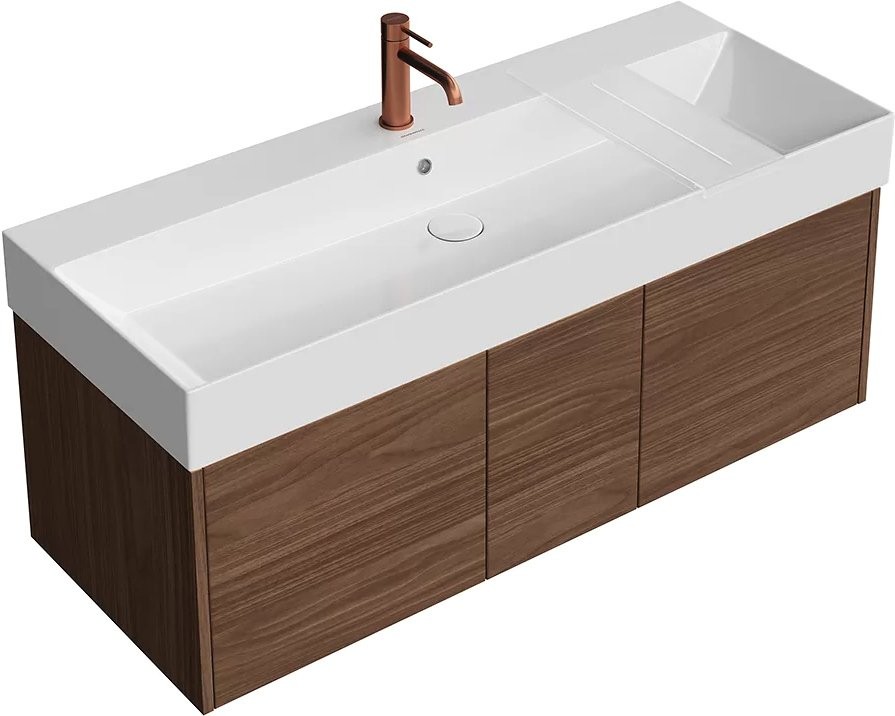 • Комплектация: Тумба под раковину KERAMA MARAZZI Grande 120, структурированный орех; Мебельная раковина KERAMA MARAZZI Grande GR.wb.120, белая