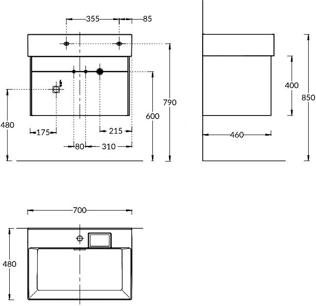 - Комплектация: Тумба под раковину KERAMA MARAZZI Logica 70, подвесная, белоснежная; Мебельная раковина KERAMA MARAZZI Logica 70