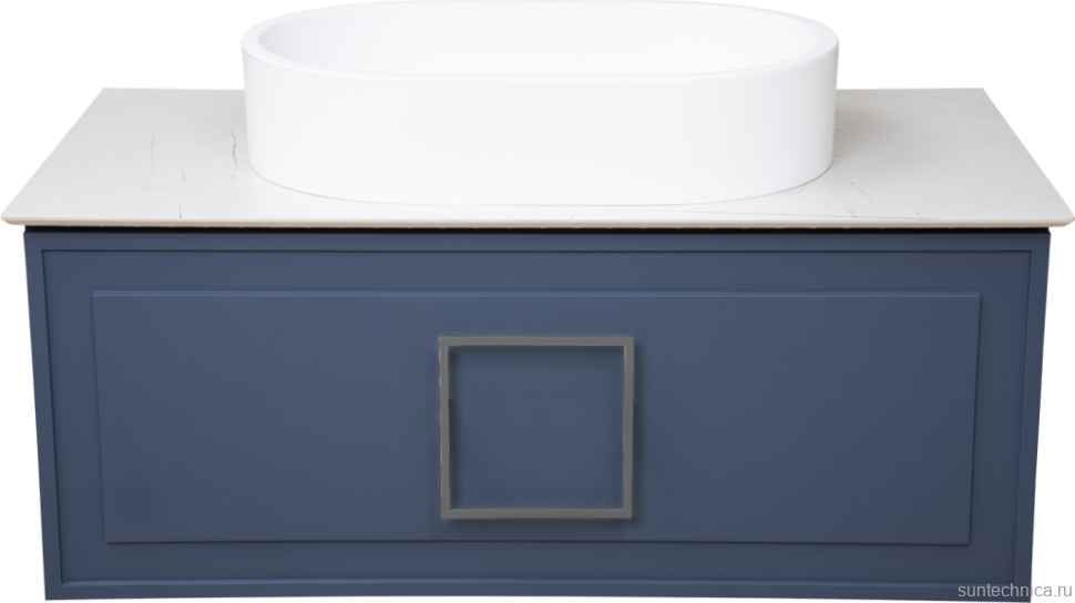 - Комплектация: Тумба под раковину La Fenice Cubo 90, синяя; Столешница в ванную под раковину La Fenice Granite FNC-03-PL01-90, белый мрамор; Накладная раковина La Fenice Senso Matt; Ручка для мебели La Fenice Cubo FNC-04-CUB-C- 168 хром