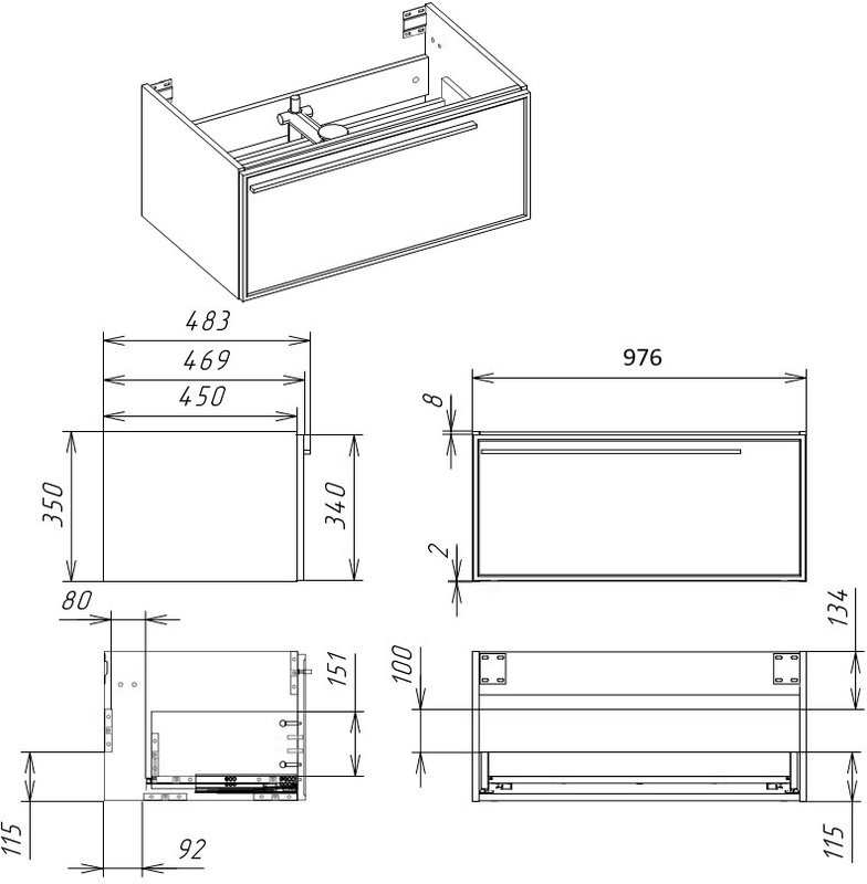 - Система хранения: ящики