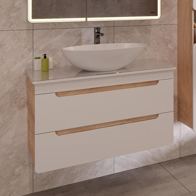 - Комплектация: Тумба под раковину Lemark Olivia 80, дуб кантри, белая глянцевая; Столешница в ванную под раковину Lemark Olivia 80, белый глянец; Накладная раковина Lemark Триумф