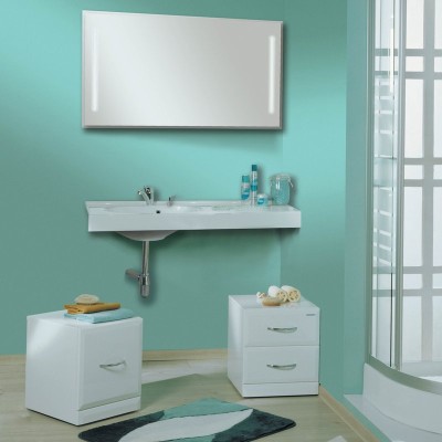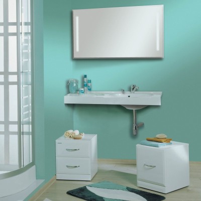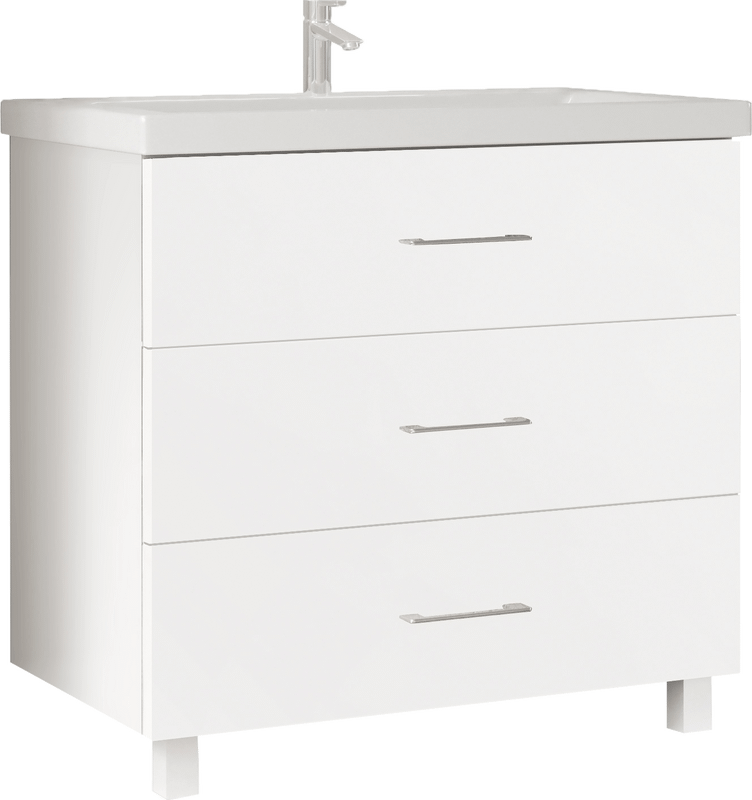 - Комплектация: Тумба под раковину Marka One Mix 80Н, с 3 ящиками, белый глянец, ручки рейлинг; Мебельная раковина Cersanit Como, 80