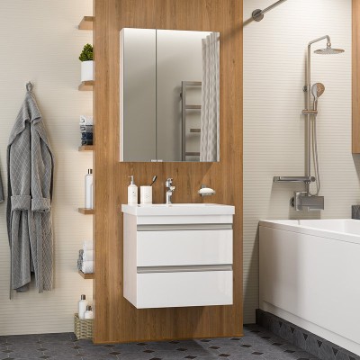 - Комплектация: Тумба под раковину Misty Марта 70, напольная, белая глянцевая; Мебельная раковина Misty Evva 70 D