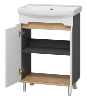 - Комплектация: Тумба под раковину Misty Сканди 60, напольная, белая, дуб крафт золотой, антрацит; Мебельная раковина Керамин Клермонт 60