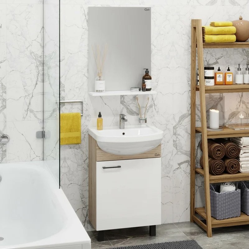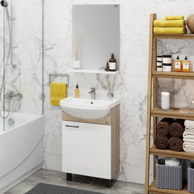 - Комплектация: Тумба под раковину Onika Эко 52 Black, напольная, белая, дуб сонома; Мебельная раковина Santeri Акватон 50