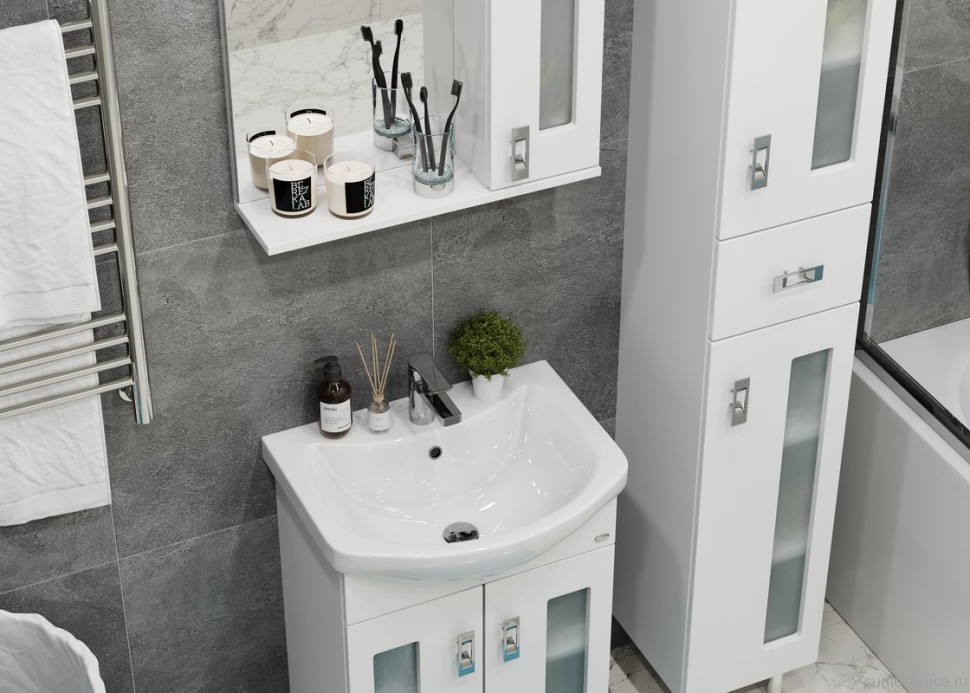 • Комплектация: Тумба под раковину Onika Кристалл 55.18 (ver.Балтика), белая; Мебельная раковина Santek Балтика 1WH501702, 55