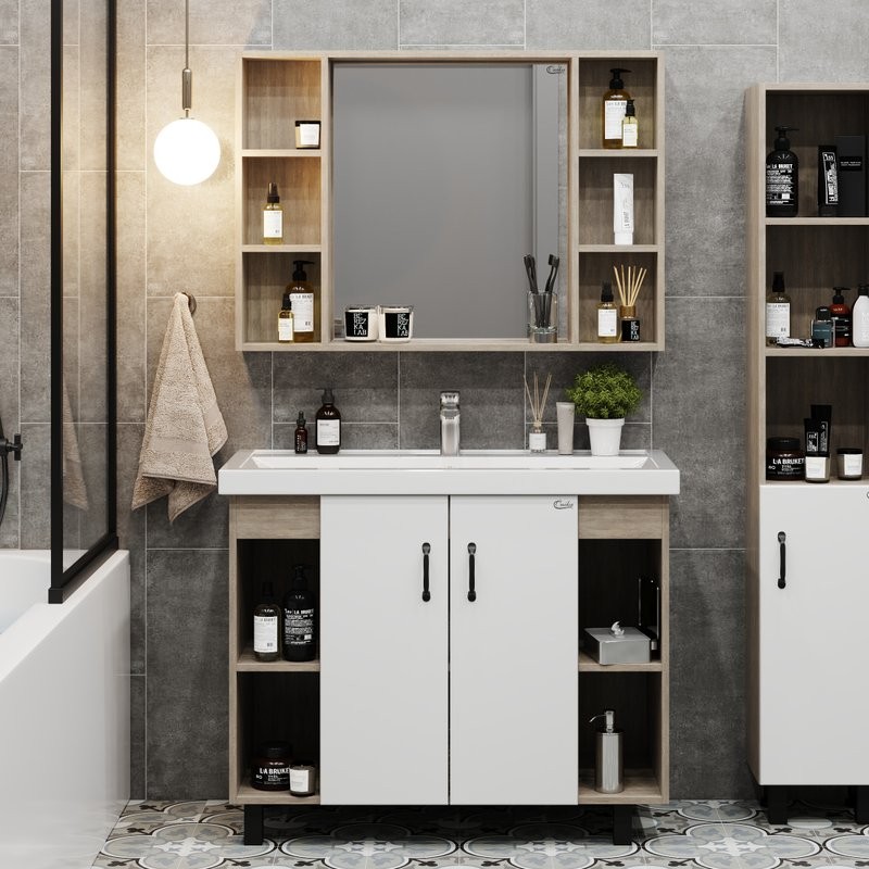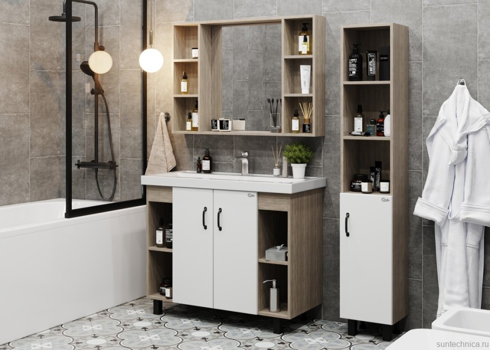 - Комплектация: Тумба под раковину Onika Тимбер, белая матовая, дуб сонома; Мебельная раковина Kirovit Фостер, 100