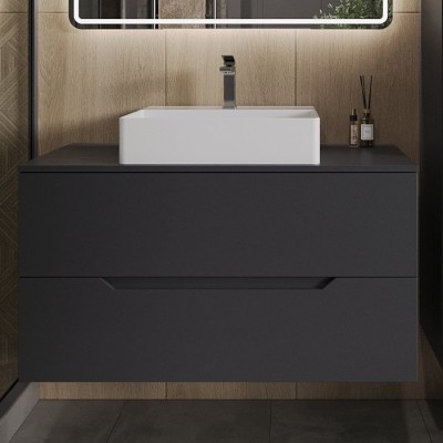 - Комплектация: Тумба под раковину со столешницей Orange Line 100, подвесная, 2 ящика, матовая черная; Накладная раковина Orange B02 B04-500W, белый глянец