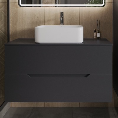 - Комплектация: Тумба под раковину со столешницей Orange Line 100, подвесная, 2 ящика, матовая черная; Накладная раковина Orange B05 B05-500W, 50 см белый глянец