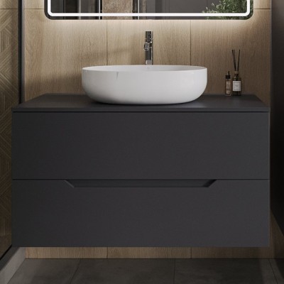 - Комплектация: Тумба под раковину со столешницей Orange Line 100, подвесная, 2 ящика, матовая черная; Накладная раковина Orange B07 B05-520W, 52 см белый глянец