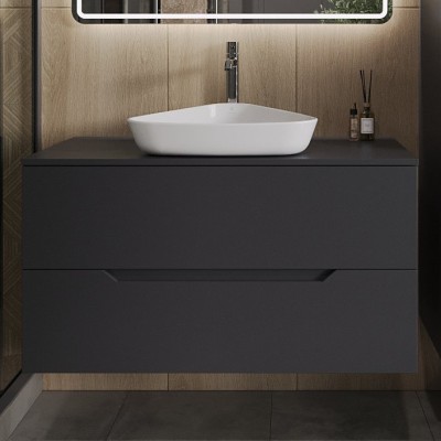 - Комплектация: Тумба под раковину со столешницей Orange Line 100, подвесная, 2 ящика, матовая черная; Накладная раковина Orange B07 B07-500W, белый глянец