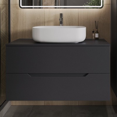 - Комплектация: Тумба под раковину со столешницей Orange Line 100, подвесная, 2 ящика, матовая черная; Накладная раковина Orange B07 B07-540W, белый глянец