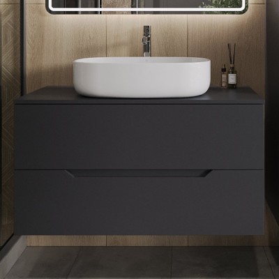 - Комплектация: Тумба под раковину со столешницей Orange Line 100, подвесная, 2 ящика, матовая черная; Накладная раковина Orange B08 B08-600W, 60 см белый глянец