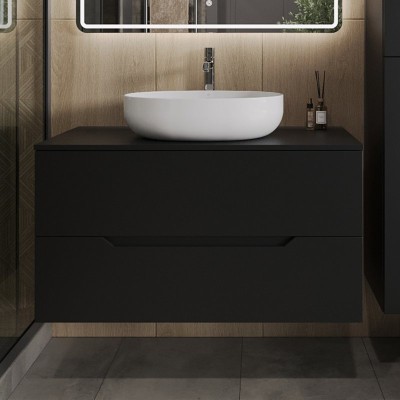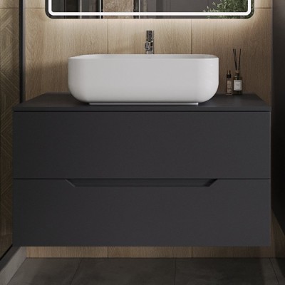 - Комплектация: Тумба под раковину со столешницей Orange Line 100, подвесная, 2 ящика, матовый графит; Накладная раковина Orange B07 B05-520W, 52 см белый глянец