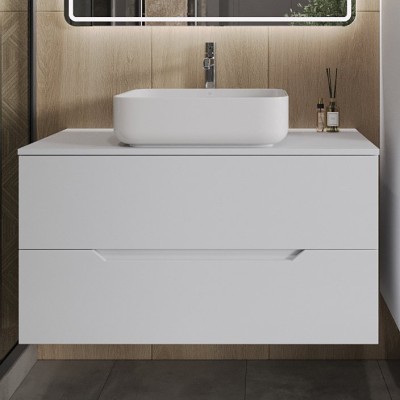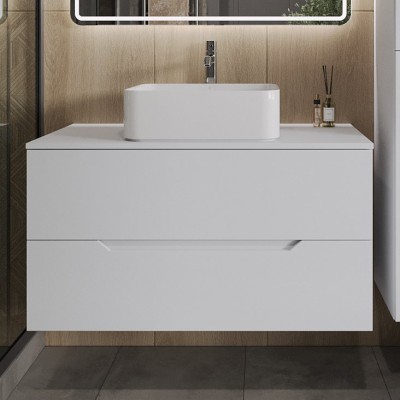 - Комплектация: Тумба под раковину со столешницей Orange Line 100, подвесная, 2 ящика, матовый латте; Накладная раковина Orange B02 B02-460W, белый глянец