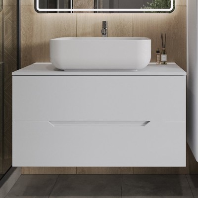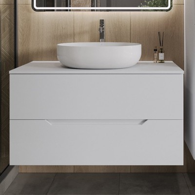 - Комплектация: Тумба под раковину со столешницей Orange Line 60, подвесная, 2 ящика, матовая белая; Накладная раковина Orange B02 B02-460MB, черный матовый
