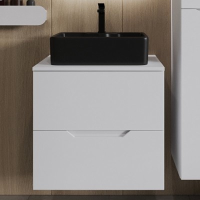 - Комплектация: Тумба под раковину со столешницей Orange Line 60, подвесная, 2 ящика, матовая белая; Накладная раковина Orange B07 B07-600W, белый глянец