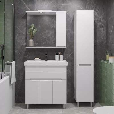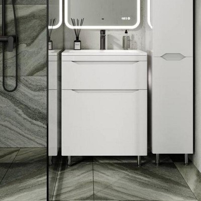 - Комплектация: Тумба под раковину со столешницей Orange Line 80, подвесная, 2 ящика, матовая белая; Накладная раковина Orange B02 B04-500W, белый глянец