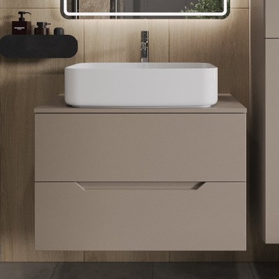 - Комплектация: Тумба под раковину со столешницей Orange Line 80, подвесная, 2 ящика, матовый латте; Накладная раковина Orange B01-475mb, черный матовый