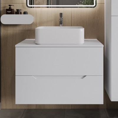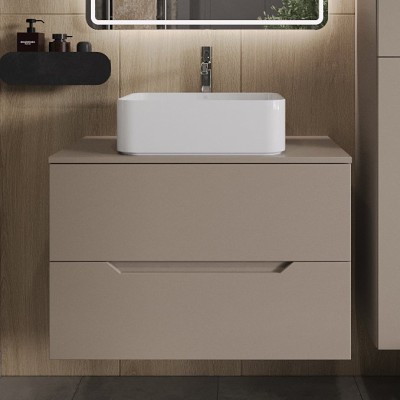 - Комплектация: Тумба под раковину со столешницей Orange Line 80, подвесная, 2 ящика, матовый латте; Накладная раковина Orange B05 B05-500W, 50 см белый глянец