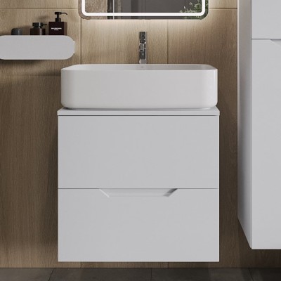 - Комплектация: Тумба под раковину со столешницей Orange Line 80, подвесная, 2 ящика, матовый латте; Накладная раковина Orange B07 B07-500W, белый глянец