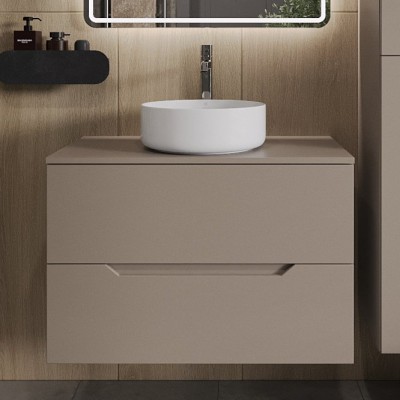 - Комплектация: Тумба под раковину со столешницей Orange Line 80, подвесная, 2 ящика, матовый латте; Накладная раковина Orange B08 B08-585w, белый глянец