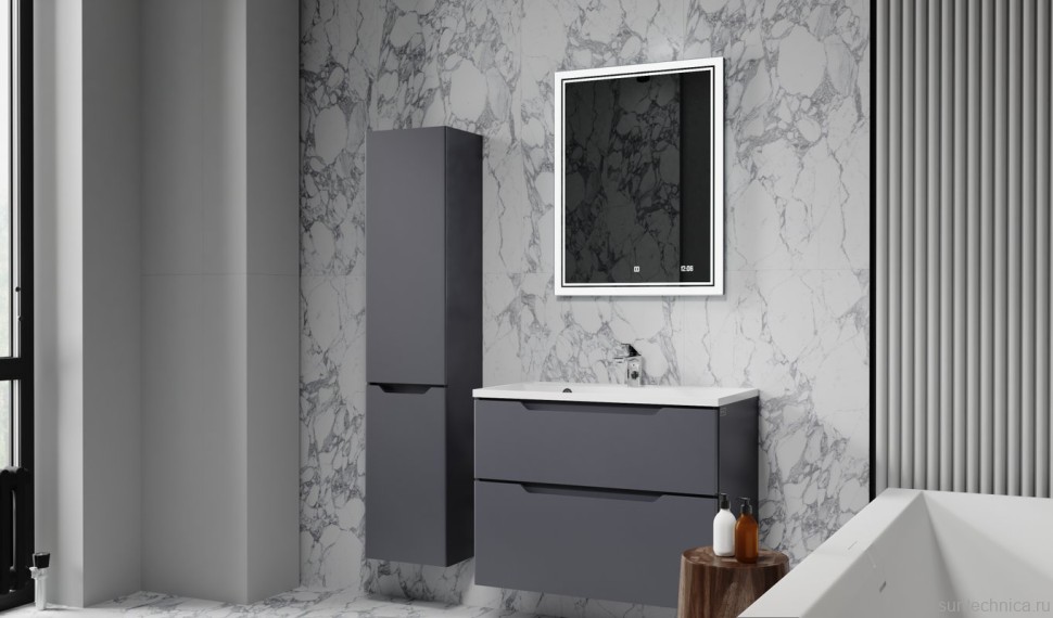 - Комплектация: Тумба под раковину Raval Wector, 80, подвесная, антрацит; Мебельная раковина Madera Classica, 80