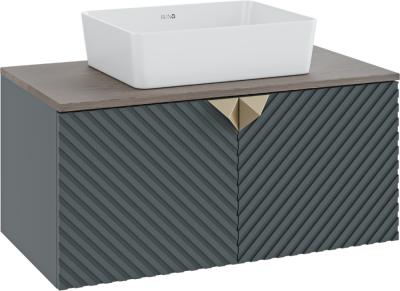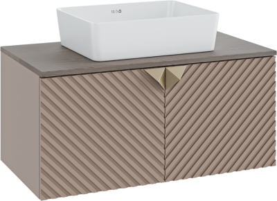 - Комплектация: Тумба под раковину Runo Андорра 85, кашемир серый, дуб какао; Накладная раковина Runo Lavello 50