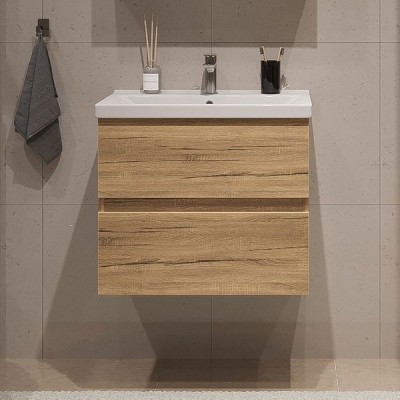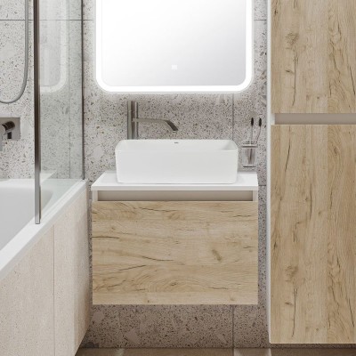- Комплектация: Тумба под раковину Runo Бари 60, крафтовый дуб; Накладная раковина Runo Lavello 50