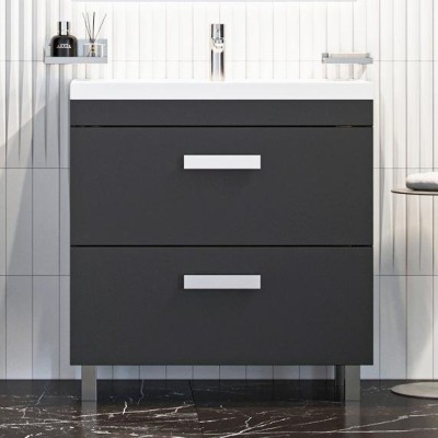 - Комплектация: Тумба под раковину Runo Мальта, 85, подвесная, дуб, черная; Накладная раковина Runo Poligono 65