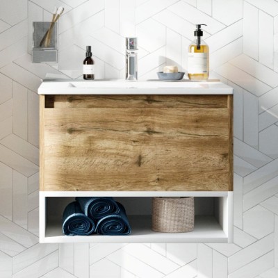 - Комплектация: Тумба под раковину Runo Мальта, 85, подвесная, дуб, серая; Накладная раковина Runo Cristallo 50