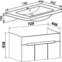 - Комплектация: Тумба под раковину Runo Парма, 75, подвесная, 3 двери; Мебельная раковина Runo Omega, 75