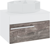 - Комплектация: Тумба под раковину Runo Вудлайн 65, железный камень; Накладная раковина Runo Cristallo 50
