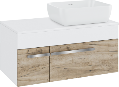 - Комплектация: Тумба под раковину Runo Вудлайн 85, крафтовый дуб; Накладная раковина Runo Ovale 50