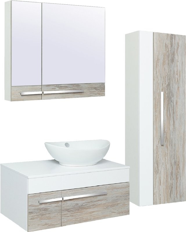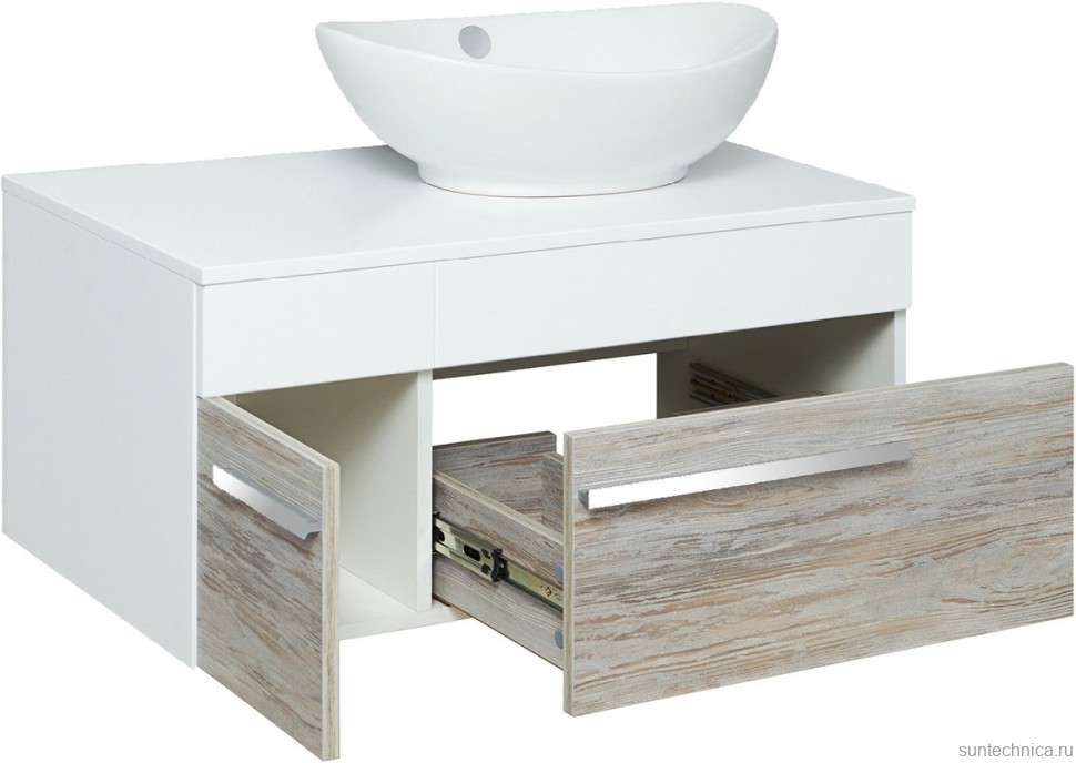 - Комплектация: Тумба под раковину Runo Вудлайн, 85, подвесная, скандинавский дуб; Накладная раковина Kirovit Гамма, 56