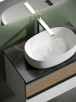 - Комплектация: Тумба под раковину Sancos Delta 80, дуб светлый, белый; Столешница в ванную под раковину Sancos TT80A1X, черный мрамор, с отв. под смеситель; Накладная раковина Ceramicanova Element