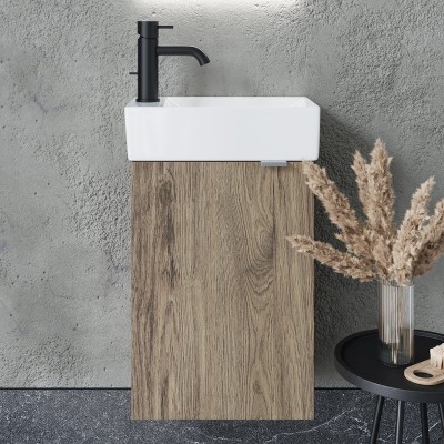 - Комплектация: Тумба под раковину Sancos Mini 35 R, подвесная, дуб чарльстон; Раковина маленькая в туалет Ceramicanova Element CN5007, R