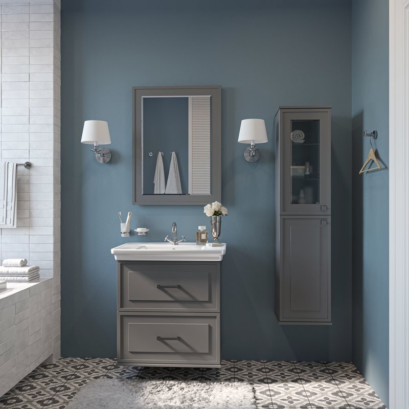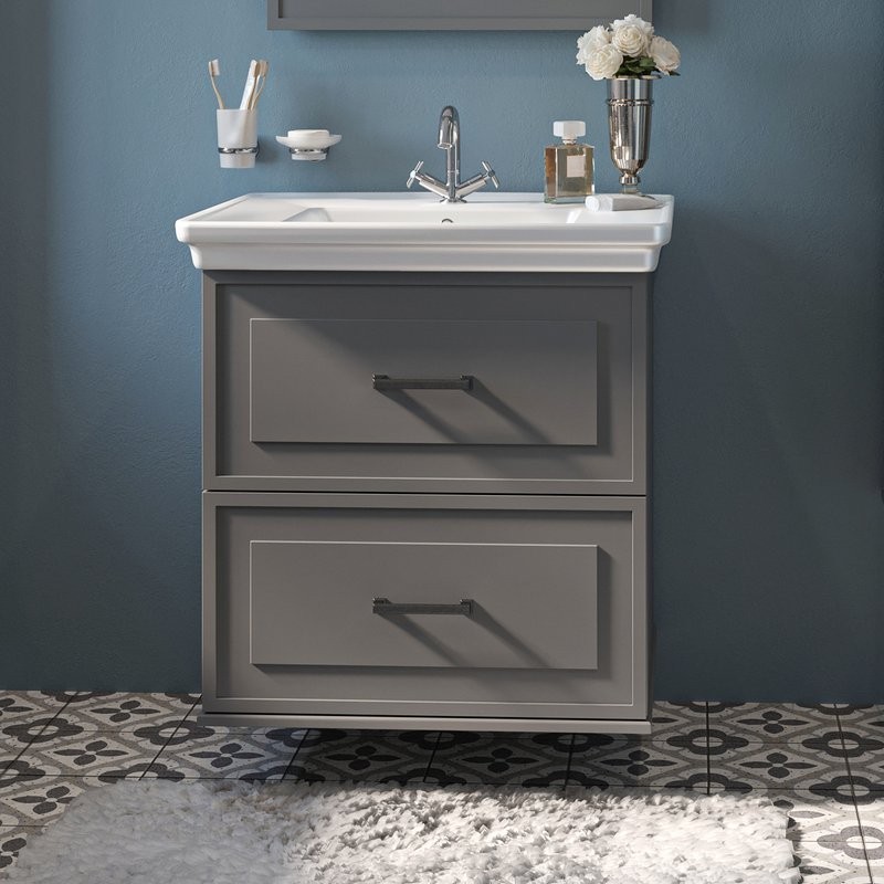 - Комплектация: Тумба под раковину Sanflor Модена, 75, подвесная, серая; Мебельная раковина Kirovit Дуглас, 75