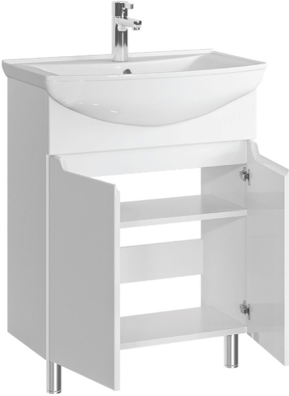 • Комплектация: Тумба под раковину SanStar Bianca, 65 напольная, белая; Мебельная раковина Kirovit Стиль 65