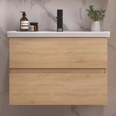 - Комплектация: Тумба под раковину SanStar Инфинити 80, подвесная, дуб сонома светлый, графит софт; Мебельная раковина Sanita luxe Fest, 80