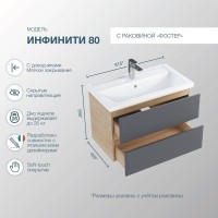 - Комплектация: Тумба под раковину SanStar Инфинити 80, подвесная, дуб сонома светлый, графит софт; Мебельная раковина Kirovit Фостер, 80
