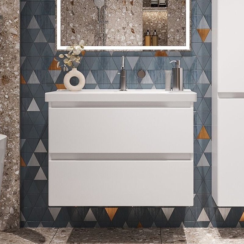 • Комплектация: Тумба под раковину SanStar Riana, 80 подвесная, белая; Мебельная раковина Kirovit Фостер, 80