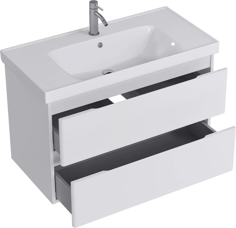 - Комплектация: Тумба под раковину SanStar Riana 90, подвесная, белая; Мебельная раковина Dreja Grace 90 641617