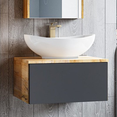 - Комплектация: Тумба под раковину СаНта Вегас 75, напольная, 2 ящика; Мебельная раковина Kirovit Оскар, 75
