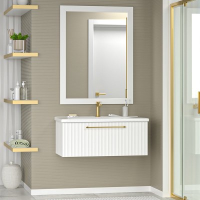 • Комплектация: Тумба под раковину Sanvit Контур 90, белая глянцевая; Мебельная раковина Sanvit 9090 D