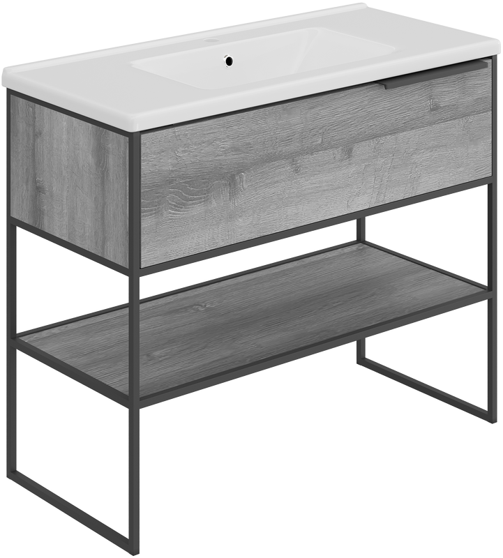- Комплектация: Тумба под раковину STWORKI Брамминг 100/2, напольная, дуб шерман серый; Мебельная раковина STWORKI Брамминг 100 9100-KL