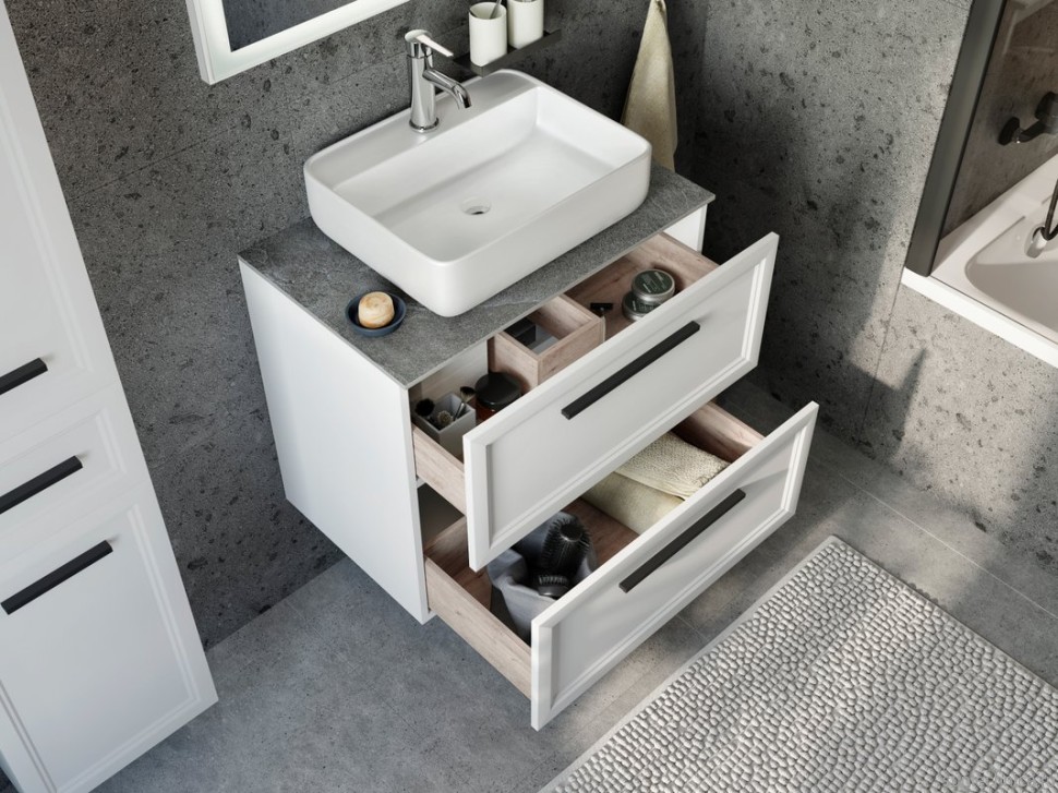 - Комплектация: Тумба под раковину STWORKI Эстерсунд 75, белая матовая; Столешница в ванную под раковину STWORKI 75, роверелла; Накладная раковина STWORKI City 2; Сифон для раковины Wirquin Минор 30718050, с выпуском 1 1/4 х 40 мм