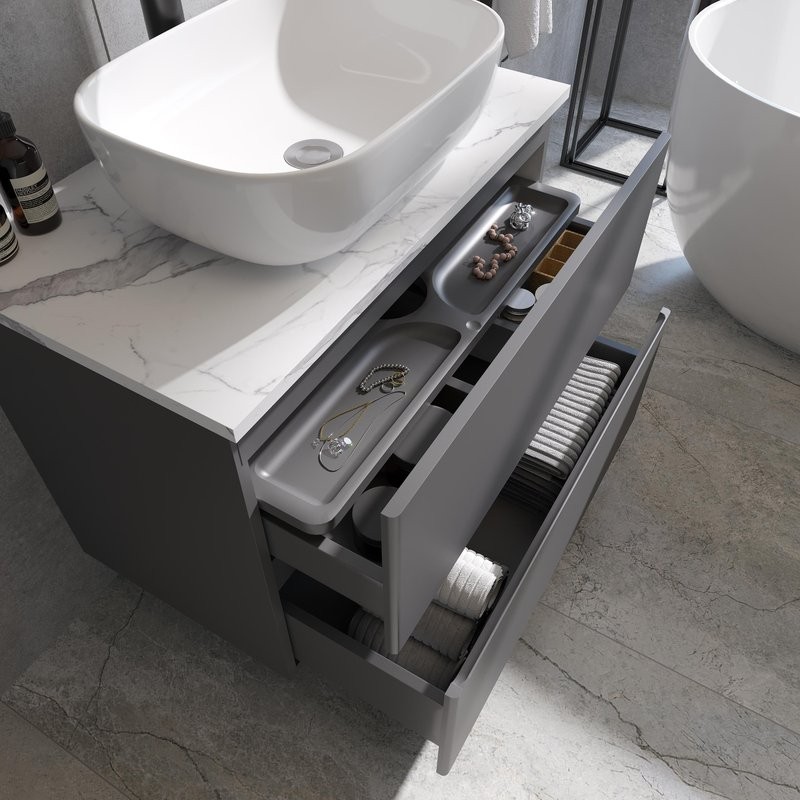 - Комплектация: Тумба под раковину STWORKI Колдинг, 80, антрацит; Столешница в ванную под раковину Cersanit Stone Energy, 80 белая матовая; Накладная раковина Cersanit Moduo 50 Square; Сифон для раковины Wirquin Минор 30718050, с выпуском 1 1/4 х 40 мм