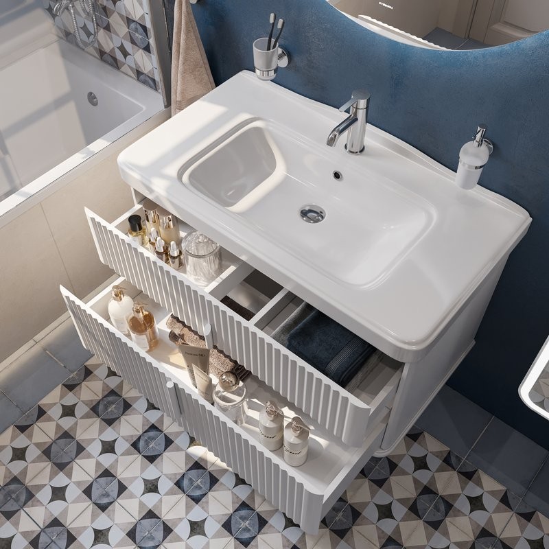 - Комплектация: Тумба под раковину STWORKI Молде 95, белая подвесная; Мебельная раковина STWORKI Молде 15095-KL, 95 см; Сифон для раковины Wirquin Минор 30718050, с выпуском 1 1/4 х 40 мм