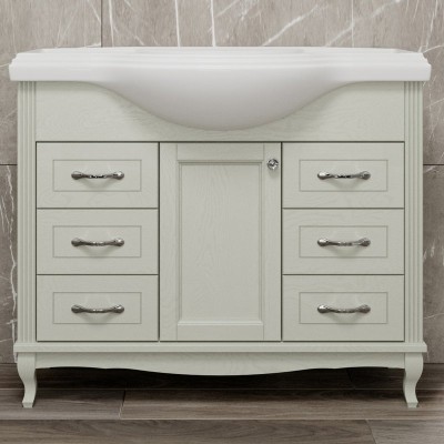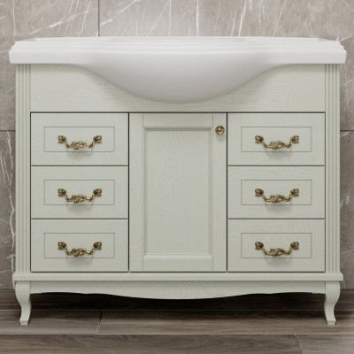- Комплектация: Тумба под раковину ValenHouse Эллина 105, кальяри, фурнитура бронза; Мебельная раковина Kirovit Классик 105
